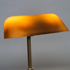 Bellova desk lamp with orange No. 9 etched shade. Double mantle illumination and original diffuser. Lamp is mounted on original base. Rare color. Circa 1925.