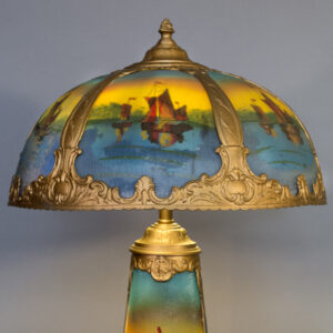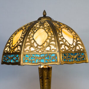 This beautiful Panel Lamp, Circa 1920s, is a showcase of the craftsmanship of that era. Take a close look at the detail on the shade and base and you’ll see what we mean. This lamp would be a great addition to any room and will surely be a conversation piece. The lamp has been meticulously restored and rewired. | Circa 1920s