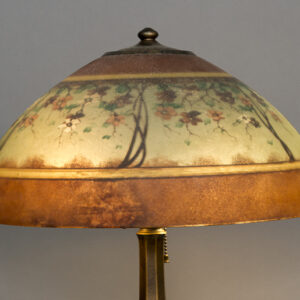 Signed Jefferson table lamp, circa 1920. Cherry blossom reverse painted design. Base is brass. Original condition